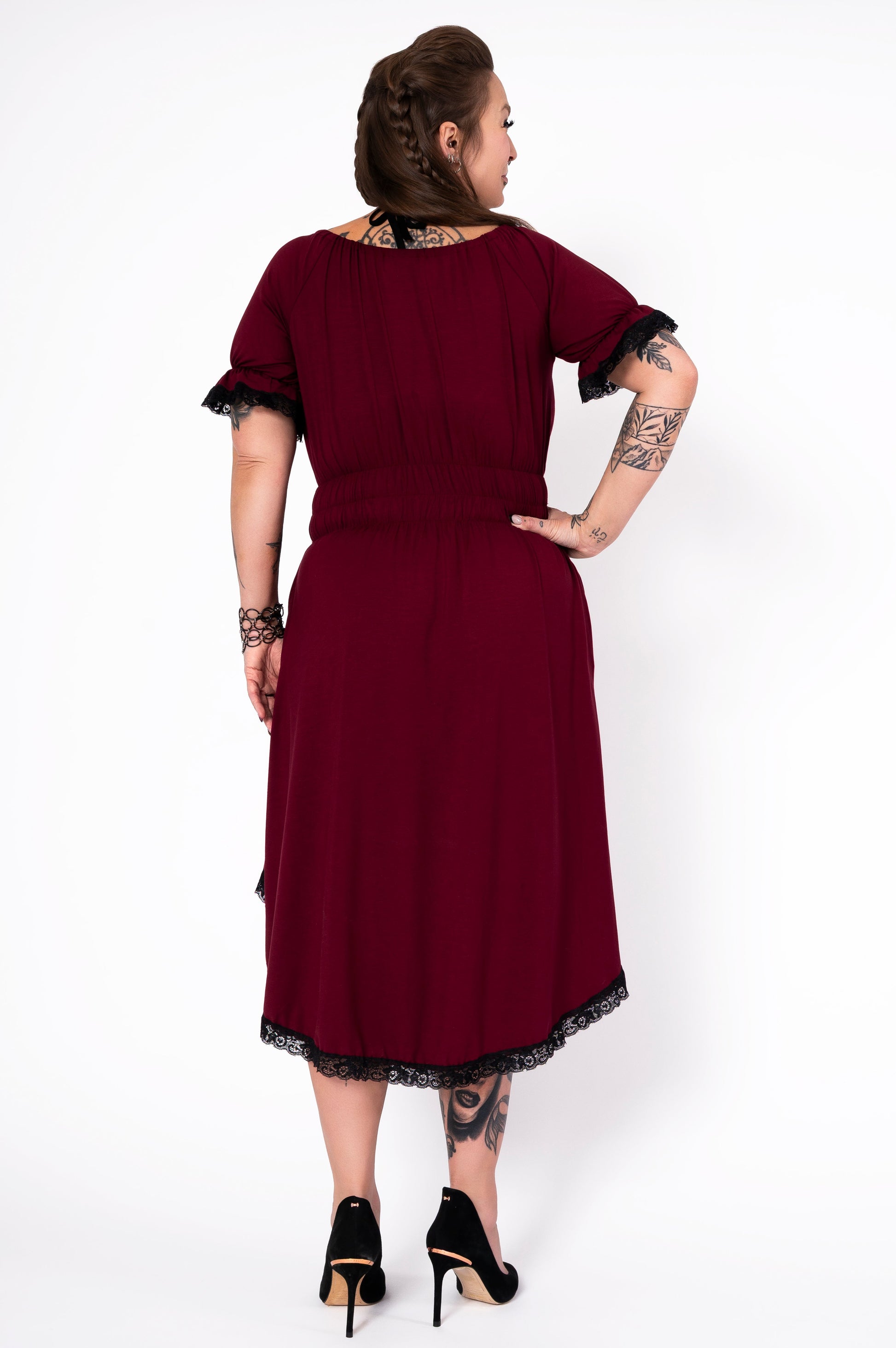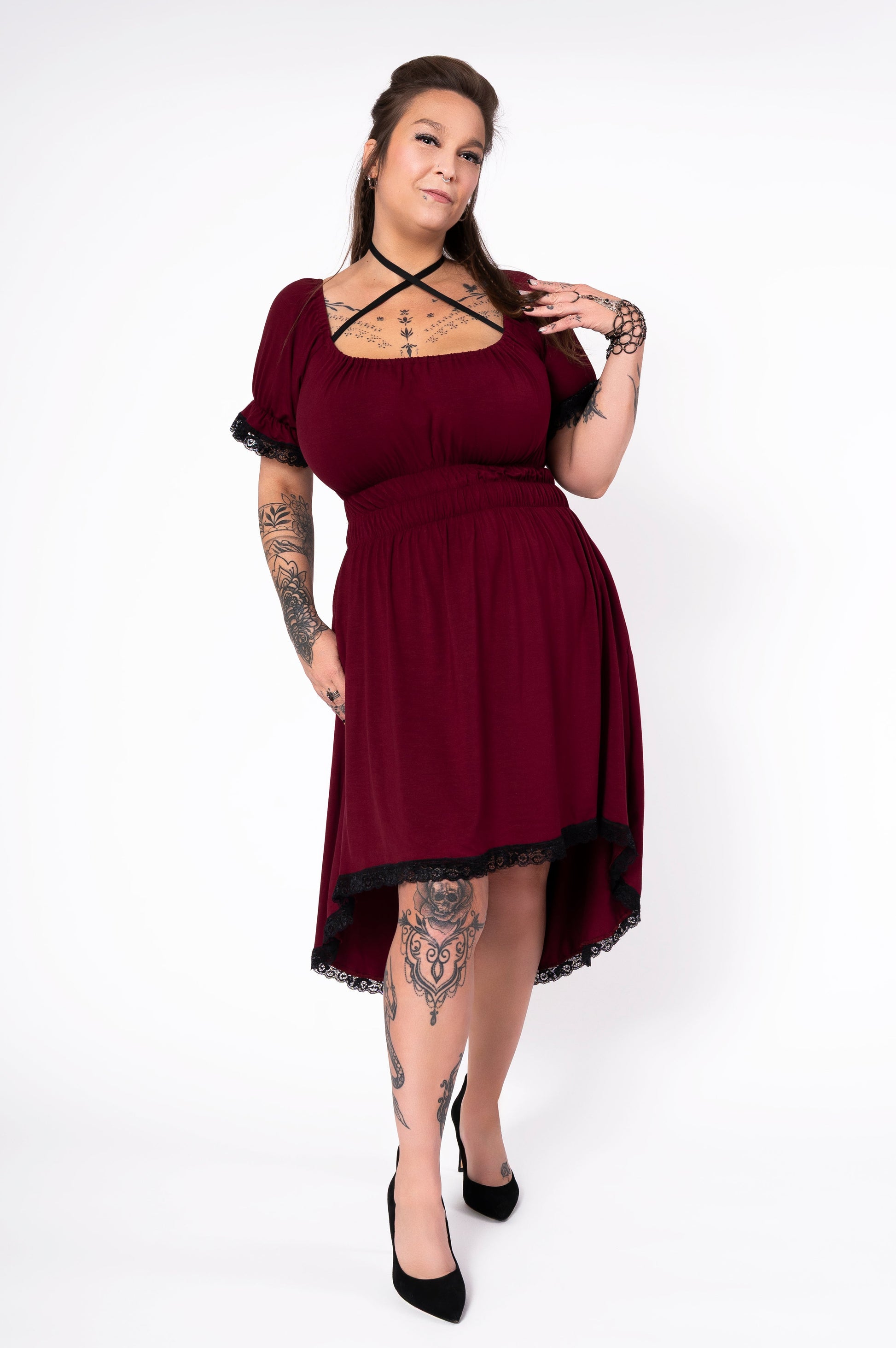 Taillée dans un tissu sergé de haute qualité, vous tomberez en amour avec sa flatteuse silhouette. Le décolleté est bouffant, la taille est cintrée, et la jupe est ample.