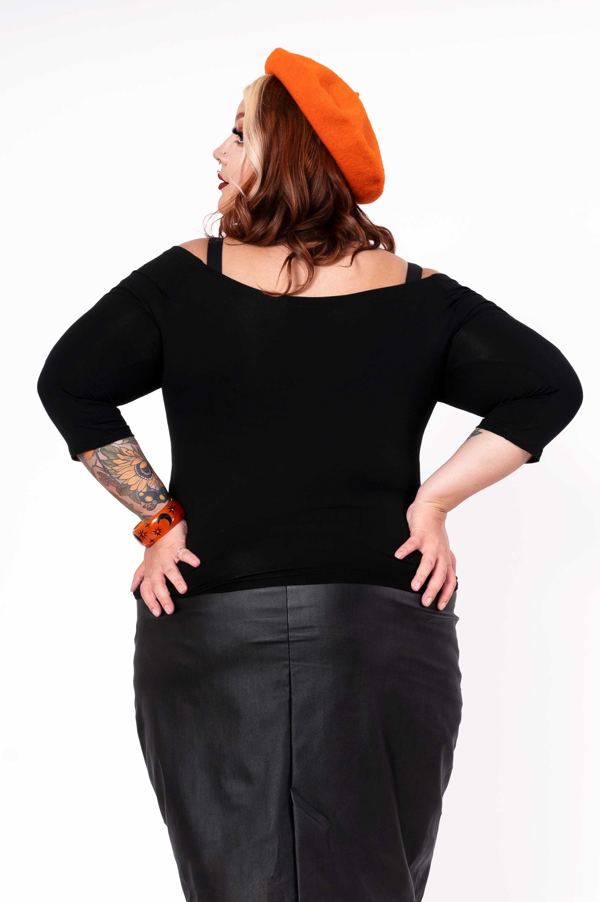 This off the shoulder versatile top can be paired with any kind of patterns, stripes, dots and more. You can also wear it under one of our jumperdress, for an edgy vibe!